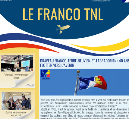 Découvrez l'actualité francophone de Terre-Neuve-et-Labrador: retour sur les activités passées, portrait d'artistes franco-terre-neuviens, les services en français à TNL, agenda des activités à venir, etc...