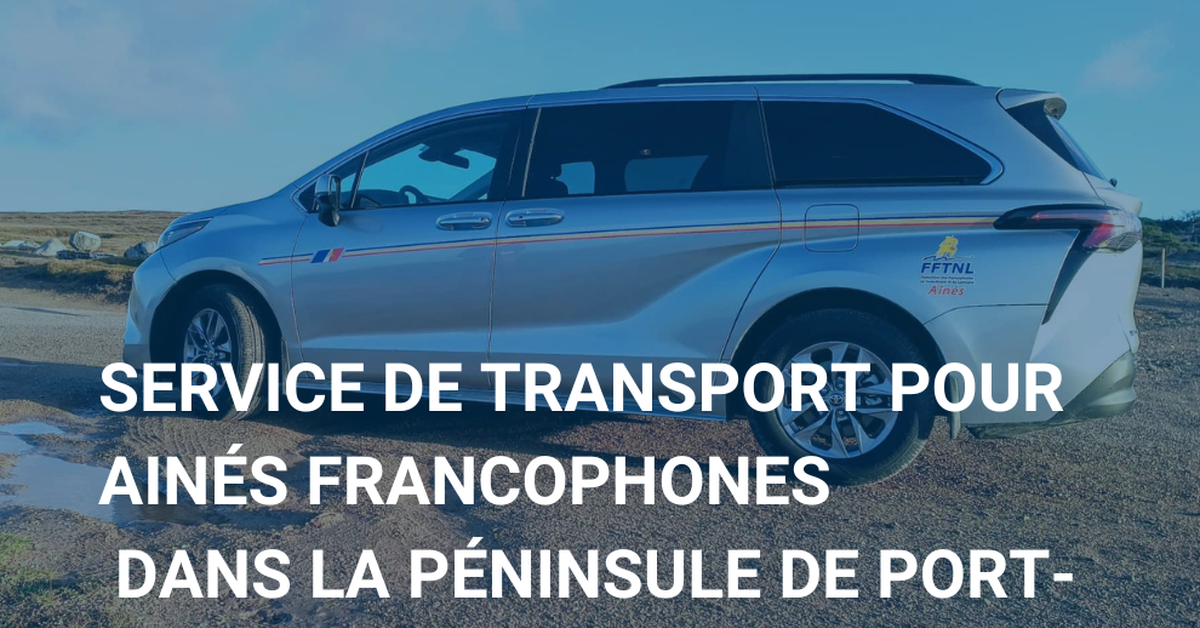 En cette Journée nationale des aînés, la Fédération des francophones de Terre-Neuve et du Labrador (FFTNL) et l'Association régionale de la Côte Ouest (ARCO), sont fières d'annoncer la création d'un service de transport pour les ainés francophones de la péninsule de Port-au-Port.