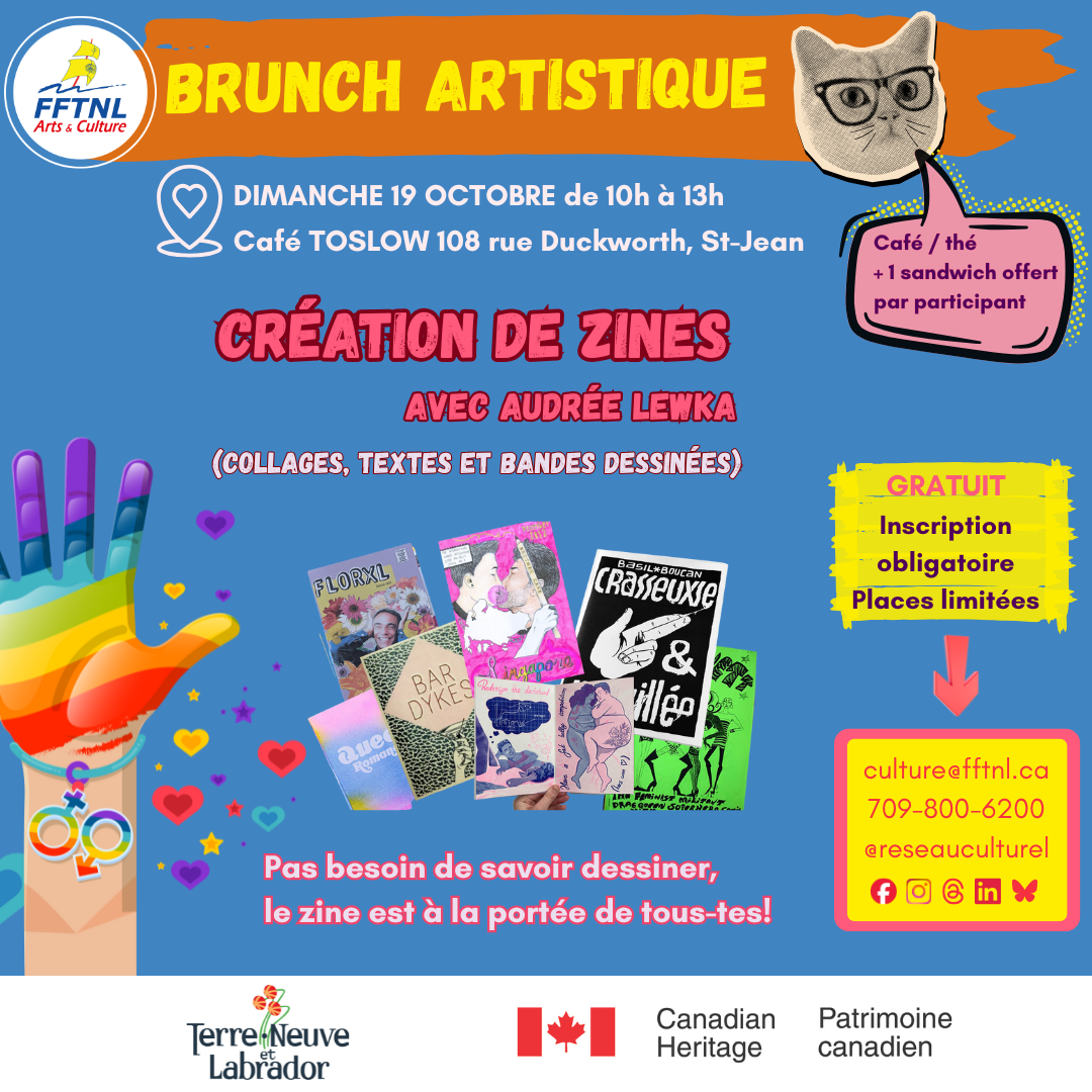 Brunch artistique le dimanche 19 octobre au café Toslow, où les participant·es pourront créer un zine à partir d'histoires personnelles, dans une ambiance conviviale.