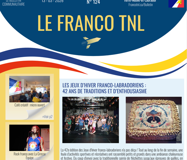 Découvrez l'actualité francophone de Terre-Neuve-et-Labrador: retour sur les activités passées, portrait d'artistes franco-terre-neuviens, les services en français à TNL, agenda des activités à venir, etc...