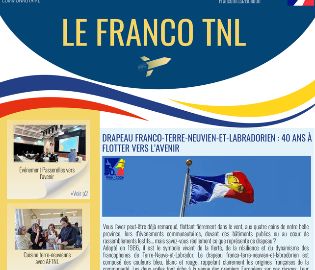 Découvrez l'actualité francophone de Terre-Neuve-et-Labrador: retour sur les activités passées, portrait d'artistes franco-terre-neuviens, les services en français à TNL, agenda des activités à venir, etc...